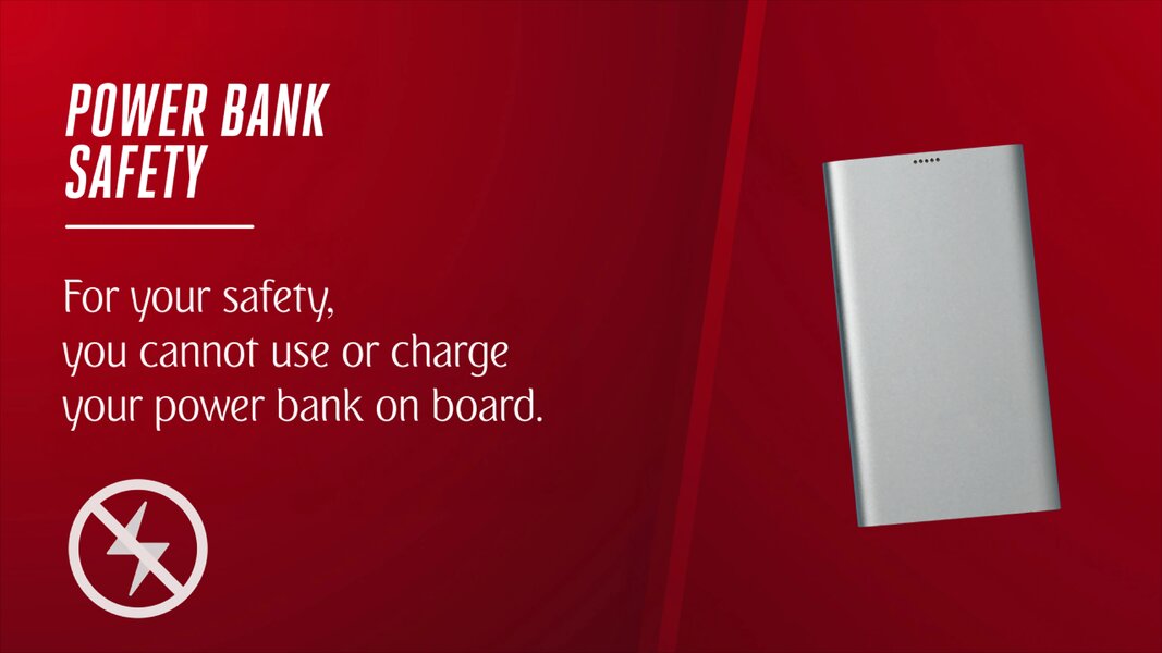 - powerbanków nie wolno umieszczać w schowkach nad siedzeniami – muszą znajdować się w kieszeni fotela lub w torbie pod siedzeniem przed pasażerem;