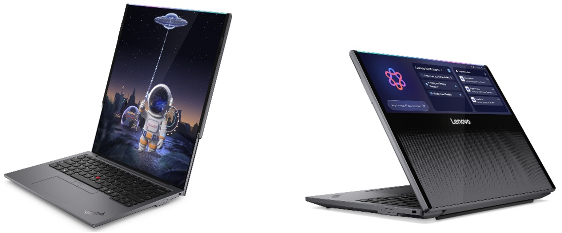 Czerpiąc z dziedzictwa przełomowych projektów Lenovo, takich jak ThinkPad X1 Fold, pierwszy na świecie komputer PC ze składanym ekranem, oraz unikatowy laptop ThinkBook™ Plus Gen 6 Rollable AI, jednym ruchem urządzenie zmienia się z poręcznego laptopa 13,3" w niemal 16-calową przestrzeń roboczą, stworzoną z myślą o wielozadaniowości i elastycznym stylu pracy. Model zapewnia użytkownikom ponad 50% więcej przestrzeni ekranu, bez potrzeby korzystania z większego, 16-calowego notebooka.