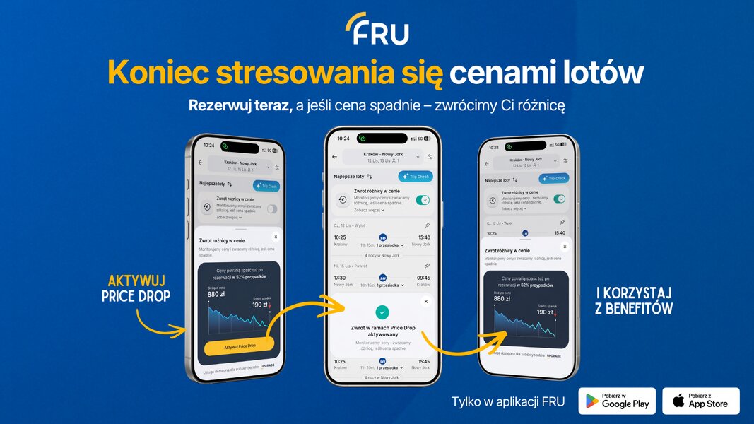 - Dla podróżnych moment zakupu biletu od zawsze był decyzją obarczoną znakiem zapytania: kupić teraz czy poczekać? Cena spadnie czy wzrośnie? Od dwóch lat gromadzimy dane i widzimy, że w ponad połowie przypadków ceny spadają już po dokonaniu rezerwacji. To oznacza, że miliony podróżnych zapłaciły liniom lotniczym więcej, niż było to konieczne – nie wiedząc o tym i nie mając żadnej możliwości reakcji. Czas niepewności i stresu związanego z cenami dobiega końca. Jako pierwsi w Europie uruchamiamy usługę, która sprawia, że moment zakupu biletu przestaje mieć znaczenie: jeśli cena spadnie po rezerwacji, różnica wraca do klienta - powiedziała Marta Gałuszka, brand managerka Fru.