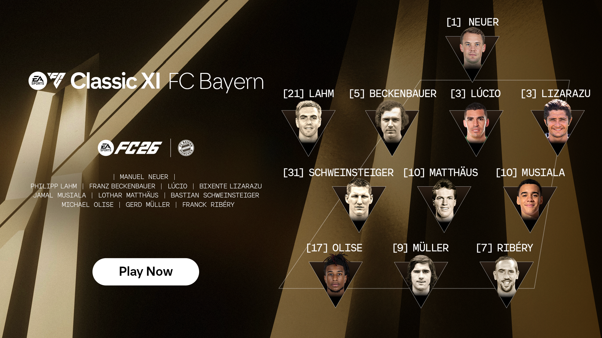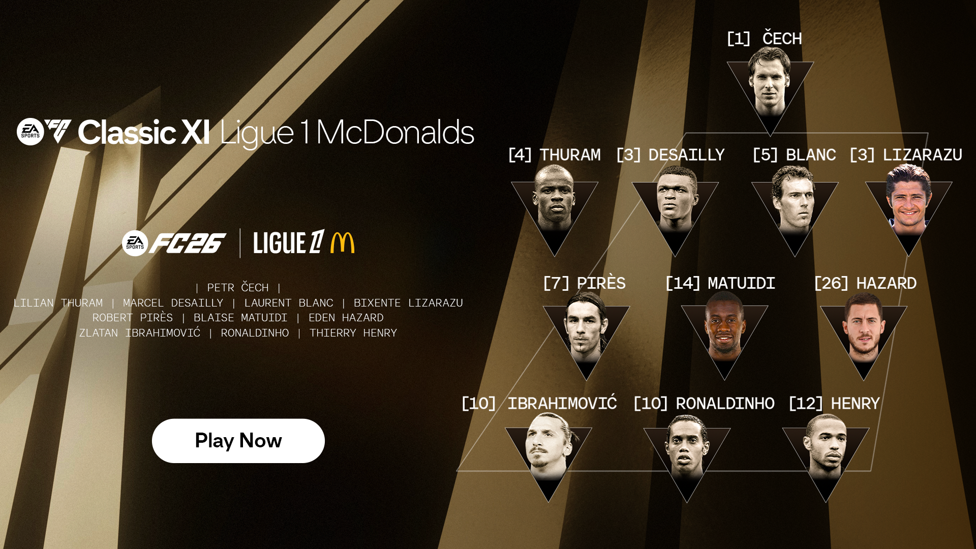 Klasyczne XI debiutują na wirtualnych boiskach w EA SPORTS FC 26, a razem z nimi najbardziej ikoniczni piłkarze, którzy zapisali się na kartach historii klubów oraz lig. W grze pojawiło się 10 składów, które są dostępne w trybach Szybkiego meczu oraz Rush. Gracze mogą zagrać klasycznymi składami drużyn: Chelsea, Juventus, Bayern Monachium, Liverpool, Real Madryt oraz z lig: Premier League, Bundesliga, LALIGA EA SPORTS, Serie A oraz Ligue 1 McDonald’s.