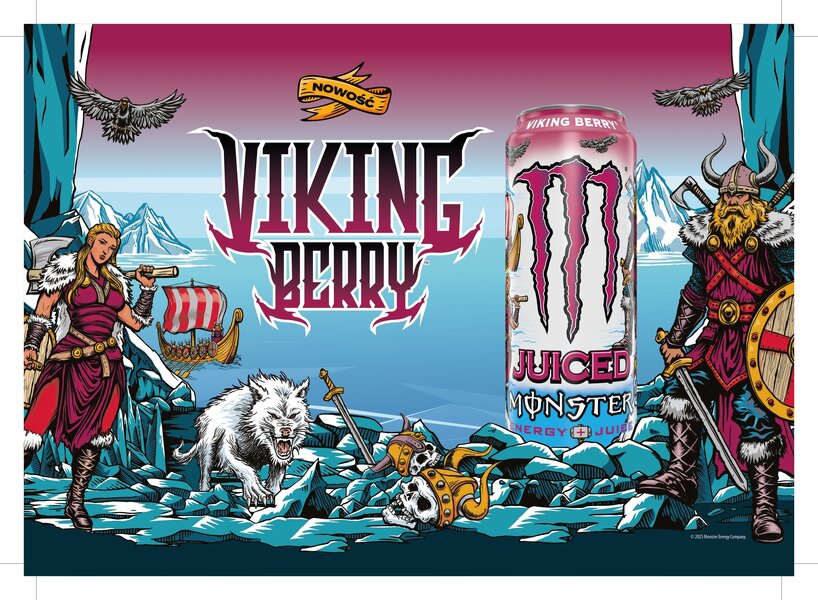 Producent poszerza linię Juiced, czyli napojów stworzonych na bazie soków owocowych. Juiced Monster Viking Berry powstał z inspiracji mężnymi wikingami, dzikimi jagodami nordyckimi i skandynawskimi owocami. Ten wariant smakowy zadebiutował w sklepach sieci Żabka, sklepach sieci Netto, a obecnie jest dostępny we wszystkich sklepach w całej Polsce.